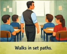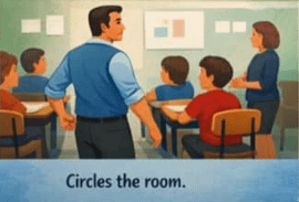 This teacher follows specific paths around the classroom, often walking up and down rows. The goal is to maintain discipline and ensure students stay focused.