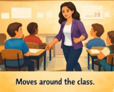 The roaming teacher moves freely around the classroom while teaching. This approach allows closer monitoring of students and encourages engagement.